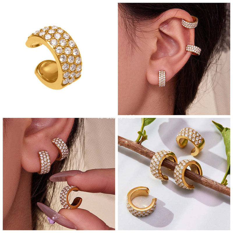 D관 - 스테인리스 18K 도금 풀큐빅 C자형 볼드 이어커프 귀걸이 [F983] 25.10-5