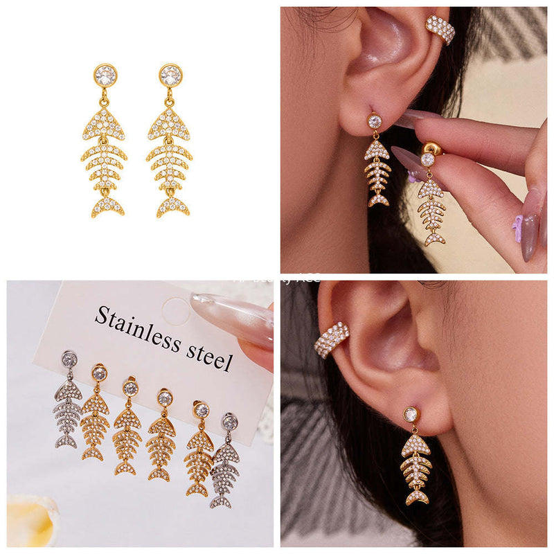D관 - 스테인리스 18K 도금 풀큐빅 물고기뼈 볼드 이어커프 귀걸이 [F1123-F983] 25.10-5