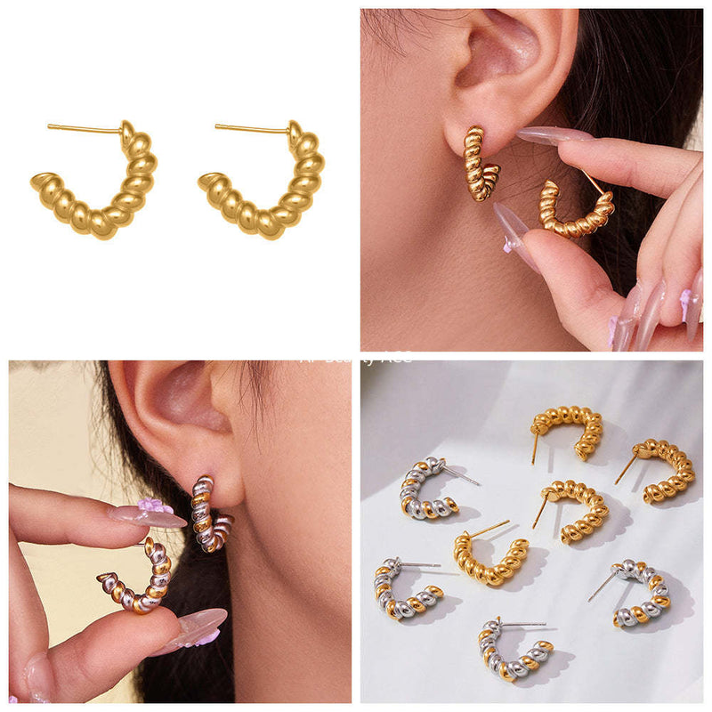 D관 - 스테인리스 18K 도금 투톤 꼬임 트위스트 모양 귀걸이 [F970] 25.10-5