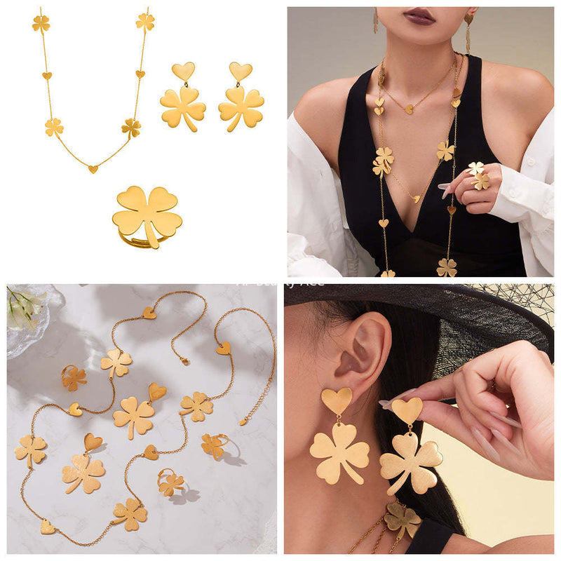 D관 - 스테인리스 18K 도금 하트 네잎 클로버 목걸이 귀걸이 반지 [TXP463] 25.10-5