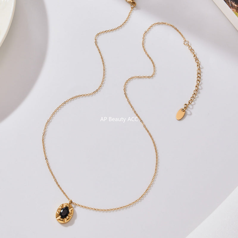 D관 - 스테인리스 스틸 블랙 큐빅 타원형 펜던트 목걸이 [P1437] 25.10-3