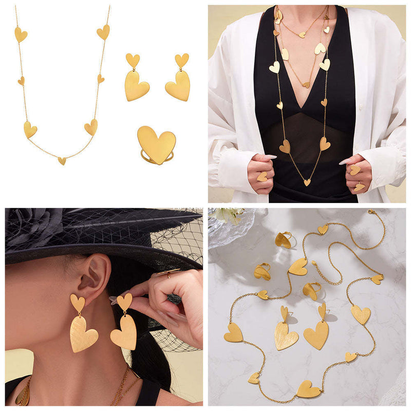 D관 - 스테인리스 18K 도금 비대칭 하트 디자인 목걸이 귀걸이 반지 [TXP462] 25.10-5
