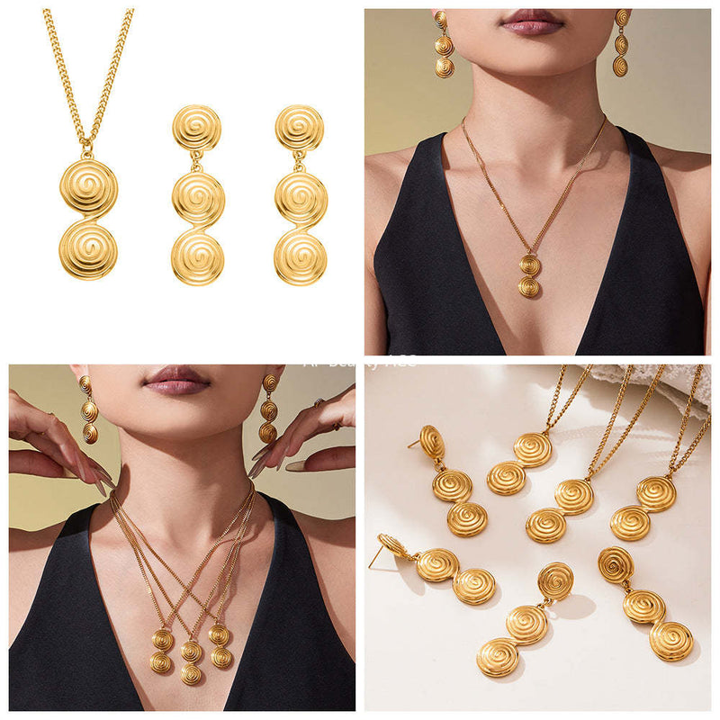 D관 - 스테인리스 스틸 나선형 원형 디자인 귀걸이 목걸이 [TXP448] 25.10-4