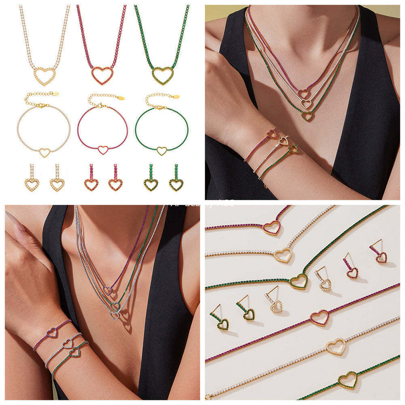 D관 - 스테인리스 스틸 풀큐빅 하트 체인 귀걸이 목걸이 팔찌 [TXP455] 25.10-4