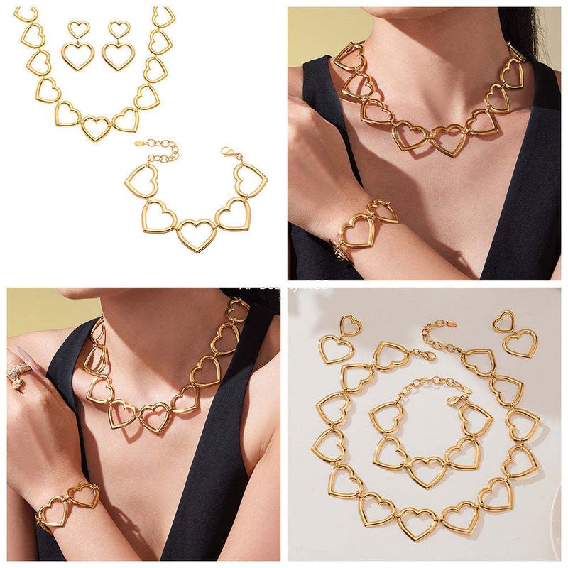 D관 - 18K 도금 스테인리스 스틸 하트 연결 디자인 귀걸이 목걸이 팔찌 [TXP452] 25.10-4