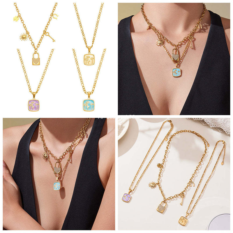 D관 - 18K 도금 스테인리스 스틸 큐빅 자물쇠 스퀘어 펜던트 목걸이 [P1322] 25.10-4