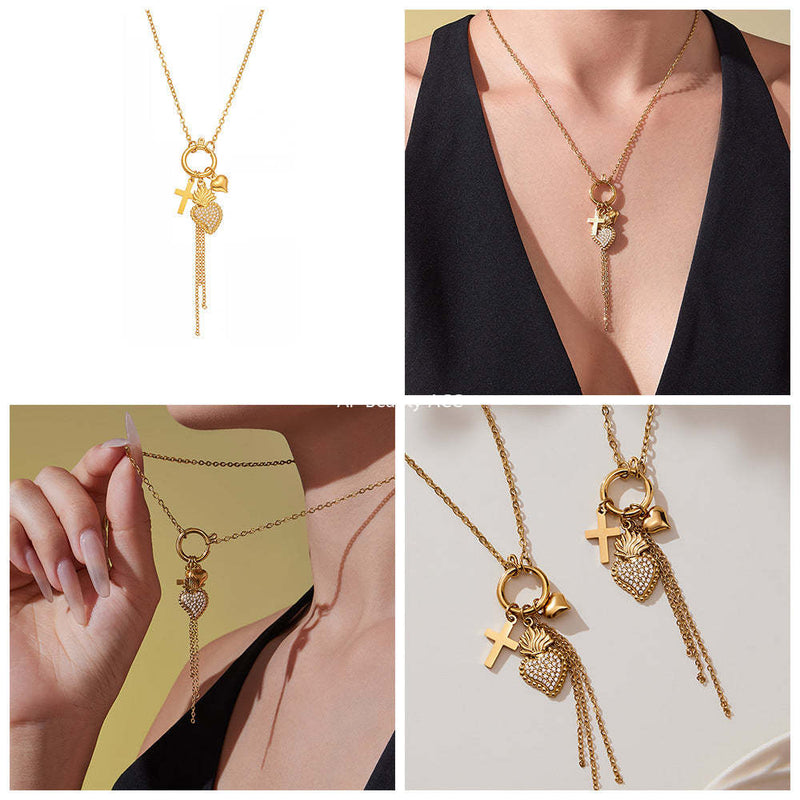 D관 - 스테인리스 스틸 큐빅 왕관 하트 드롭 펜던트 목걸이 [P1605-2] 25.10-4