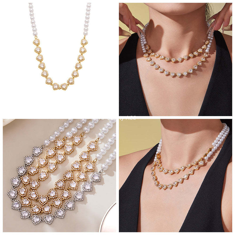 D관 - 18K 도금 스테인리스 스틸 핸드메이드 진주 하트 큐빅 목걸이 [P1735] 25.10-4