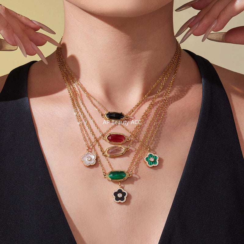 D관 - 스테인리스 스틸 크리스탈 큐브 플라워 큐빅 펜던트 목걸이 팔찌 [TXP453] 25.10-4