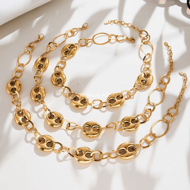 D관 - 18K 도금 스테인리스 스틸 더블 원형 볼드 체인 목걸이 [P1440] 25.10-2