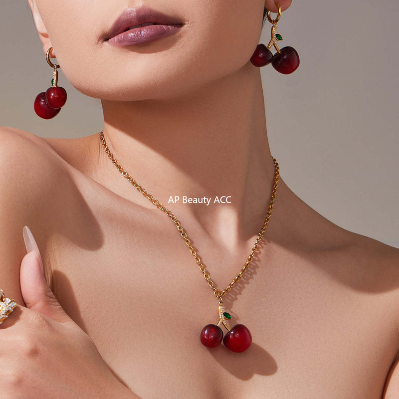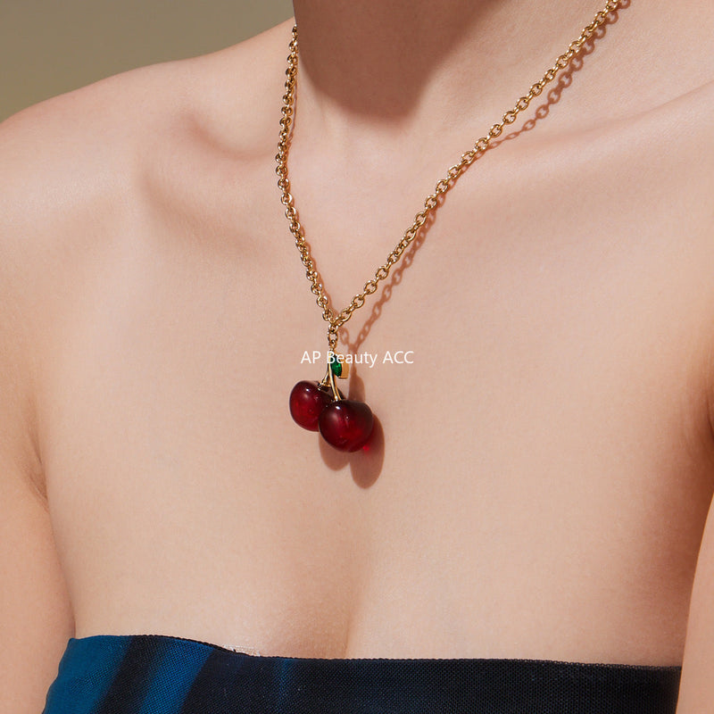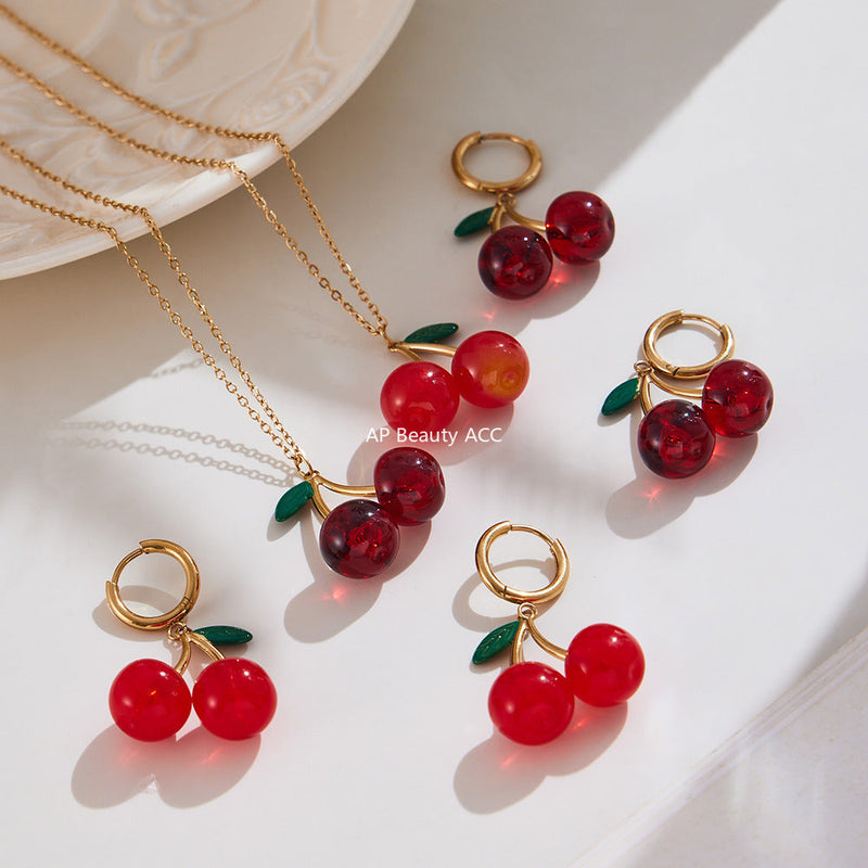 D관 - 스테인리스 스틸 레진 체리 펜던트 목걸이 귀걸이 [TXF427] 25.10-2