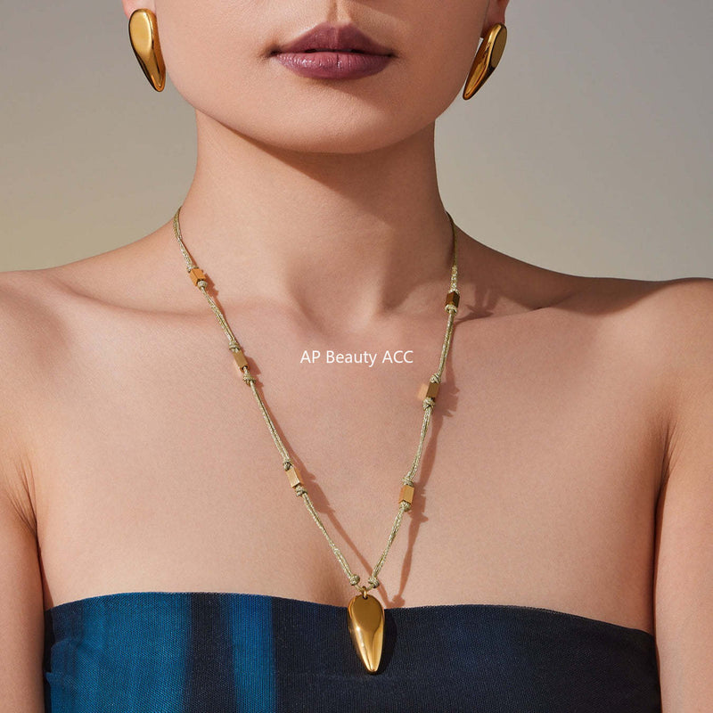 D관 - 스테인리스 스틸 왁스끈 물방울 펜던트 롱 목걸이 귀걸이 [TXP428-TXF428] 25.10-2