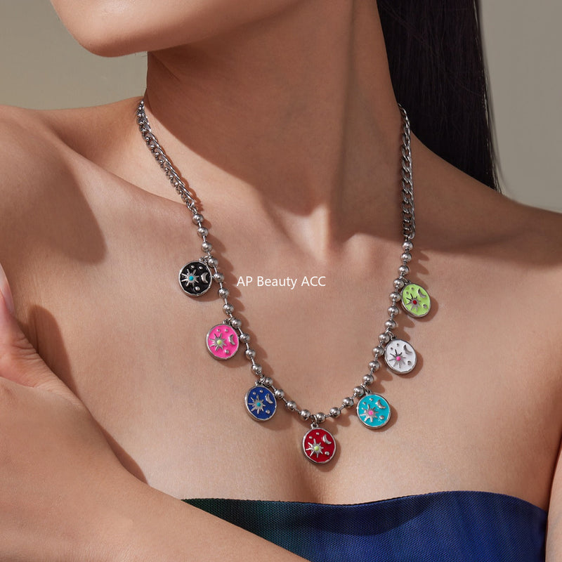 D관 - 스테인리스 스틸 에나멜 해 달 원형 펜던트 목걸이 [P158] 25.10-3
