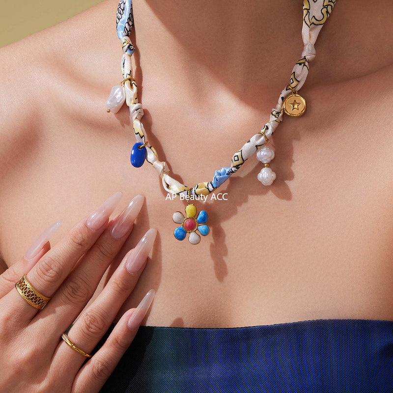 D관 - 스테인리스 스틸 호안석 진주 펜던트 스카프 목걸이 [P2178] 25.10-2