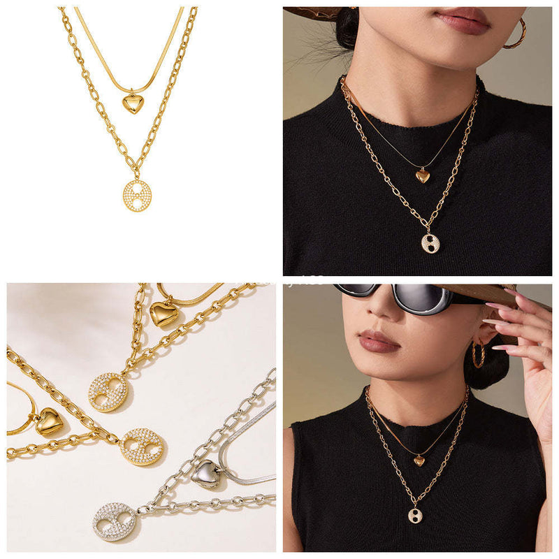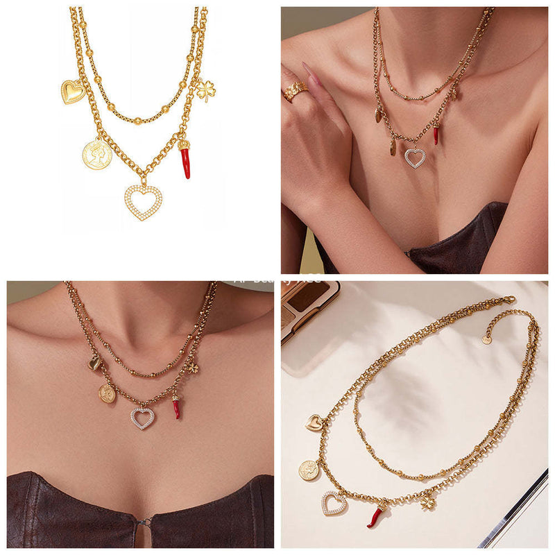 D관 - 더블 레이어 하트 큐빅 18K 도금 스테인리스 목걸이 [P100] 25.11-3