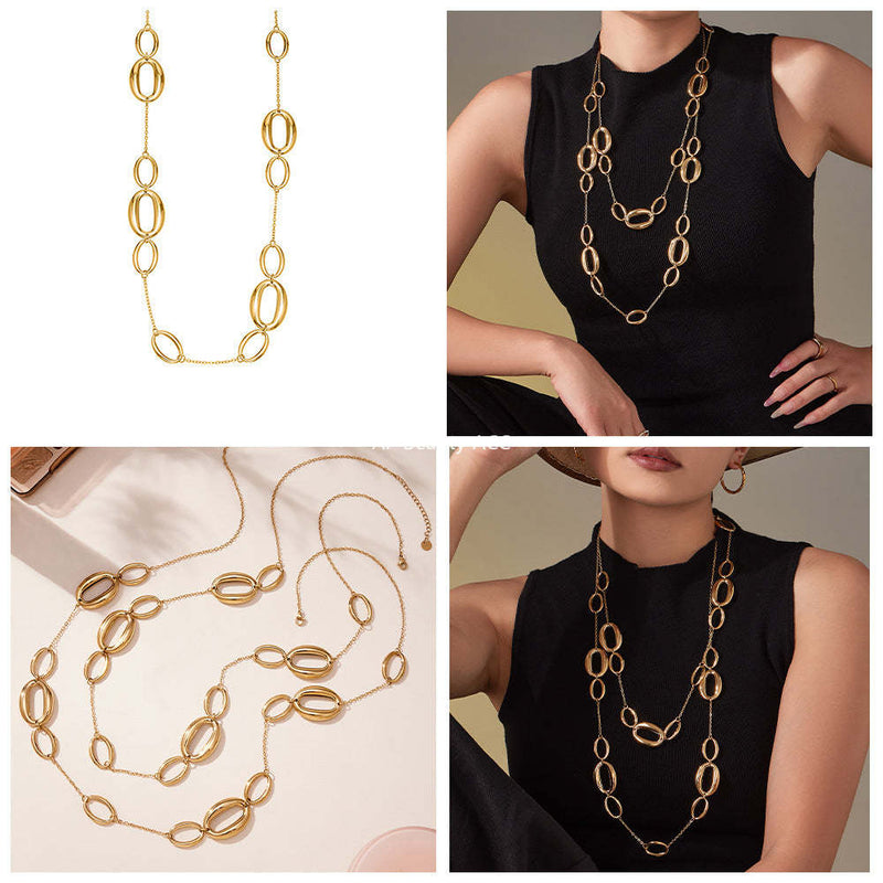D관 - 기하 O체인 롱 디자인 18K 도금 스테인리스 목걸이 [M084] 25.11-3