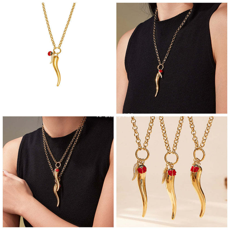 D관 - 고추 모양 펜던트 큐빅 18K 도금 스테인리스 목걸이 [P1094] 25.11-3