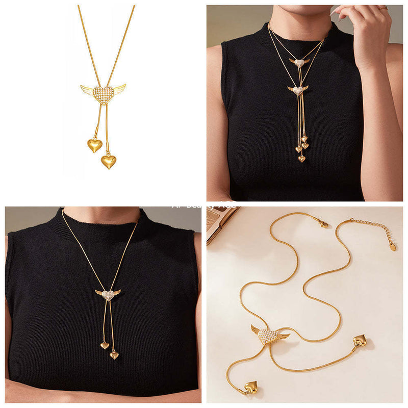 D관 - 큐빅 하트 날개 태슬 조절형 스테인리스 스틸 목걸이 [P1870] 25.11-3