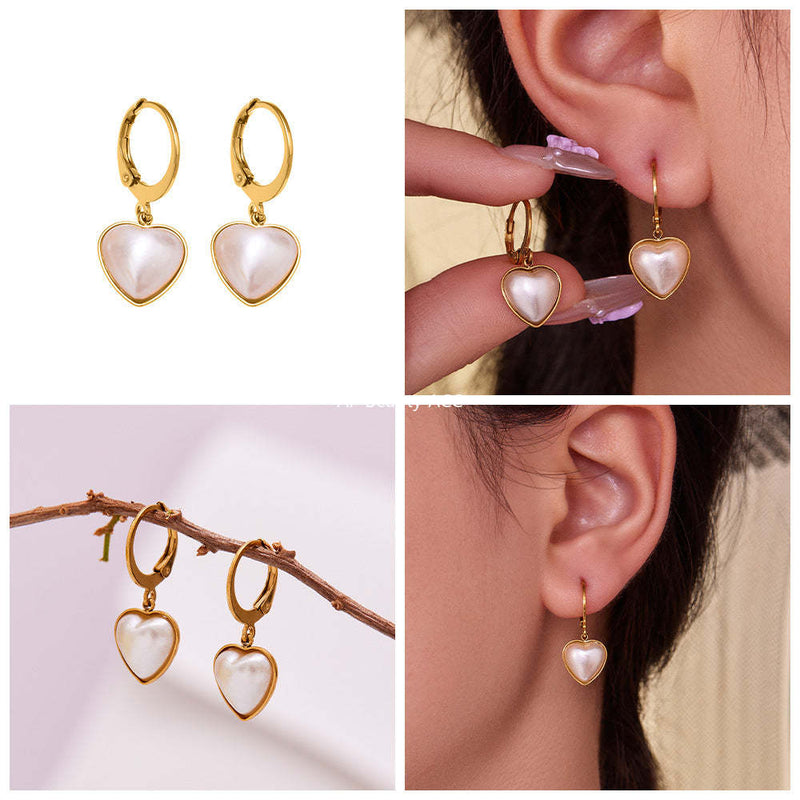 D관 - 스테인리스 18K 도금 자개진주 하트 귀걸이 [F017] 25.10-5