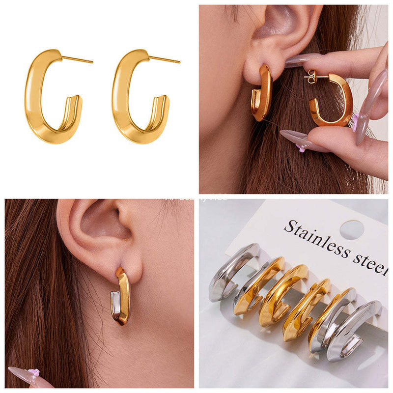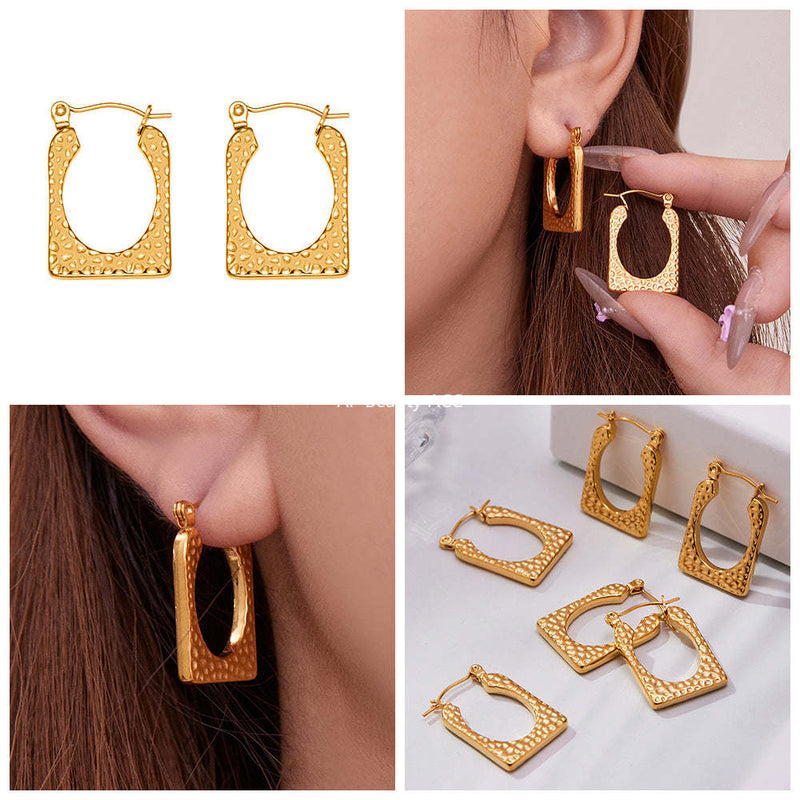 D관 - 스테인리스 18K 도금 펀칭 스퀘어 U자형 귀걸이 [F624] 25.10-5