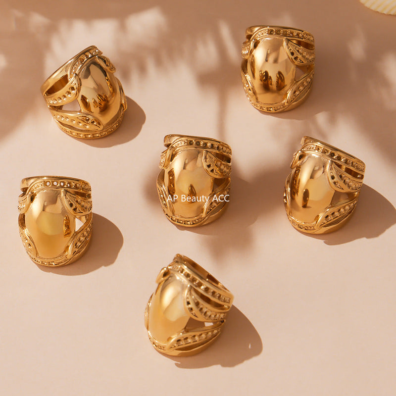 D관 - 18K 골드 도금 스테인리스 스틸 볼드 반지 [A677] 25.10-1