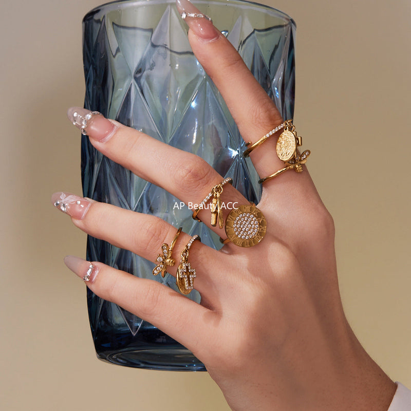 D관 - 18K 도금 스테인리스 스틸 십자가 큐빅 오픈형 반지 [A569-A572-A649] 25.10-1