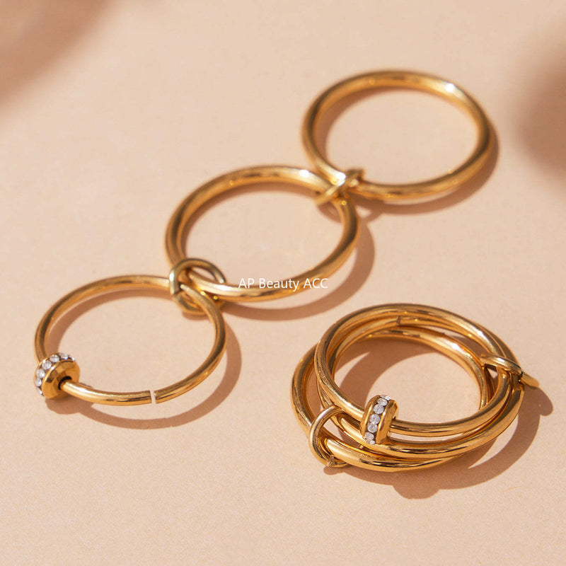 D관 - 더블 레이어 펀칭 디자인 티타늄 스틸 18K 도금 반지 [A225] 25.09-4