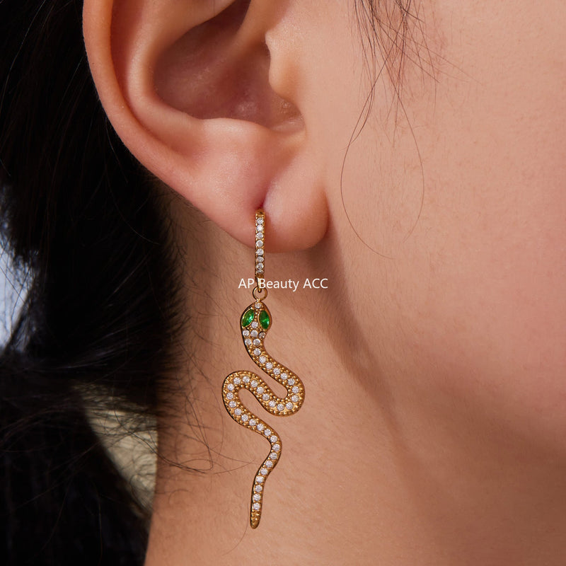 D관 - 18K 도금 스테인리스 스틸 큐빅 뱀 디자인 반지 귀걸이 [TXF412] 25.10-1