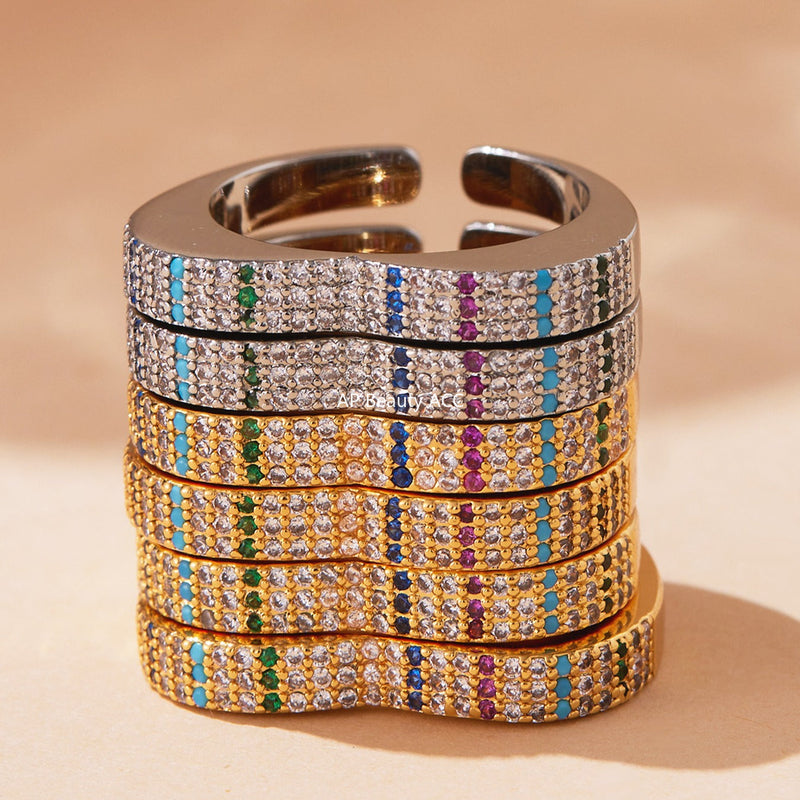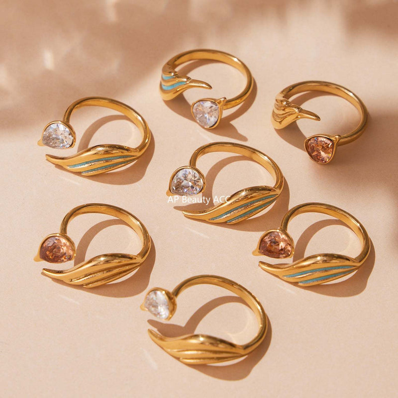 D관 - 스테인리스 스틸 물방울 큐빅 에나멜 오픈형 반지 [A508] 25.09-4
