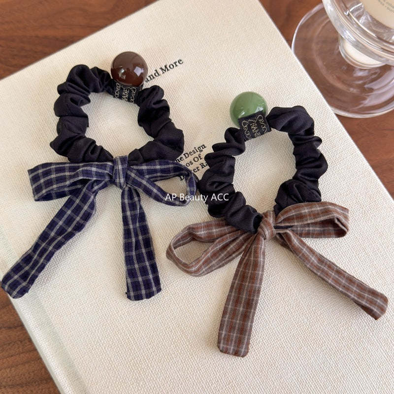 E관 - 체크 스트라이프 리본 방울 곱창 헤어밴드 [27488] 25.09-4