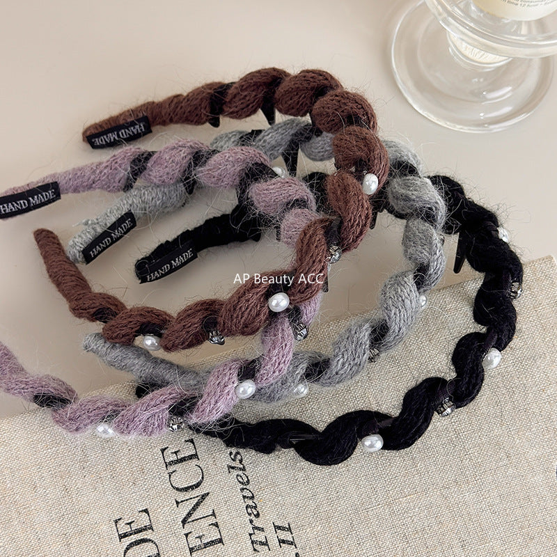 E관 - 털실 니트 큐빅 진주 장식 빗살 머리띠 [27663] 25.11-2