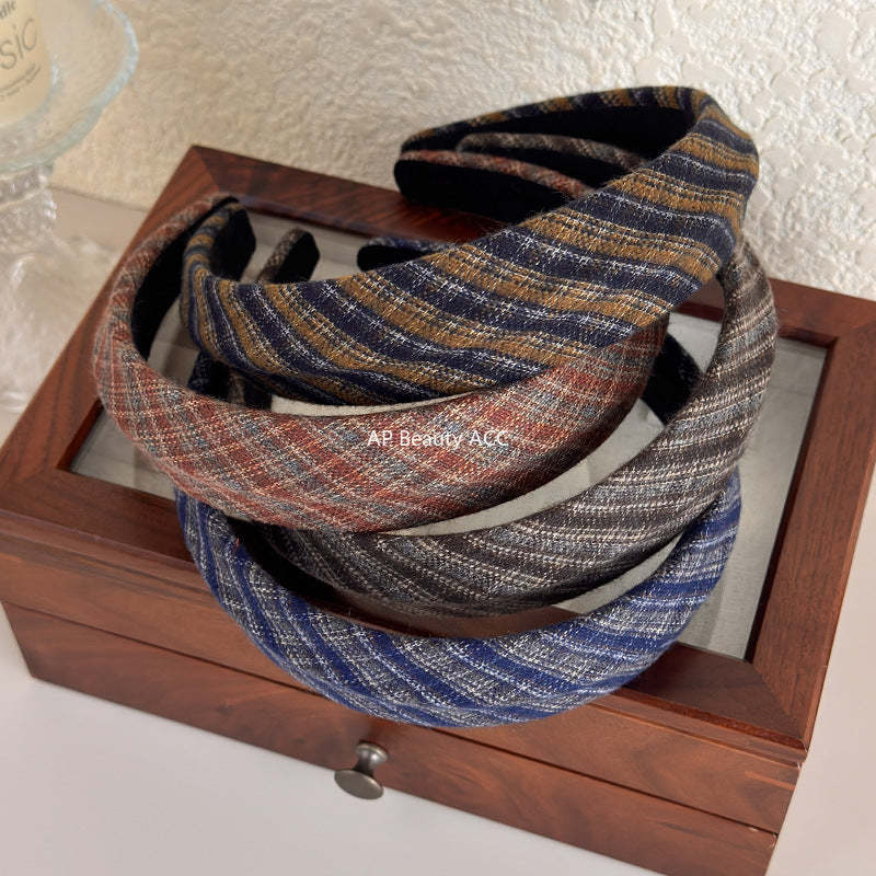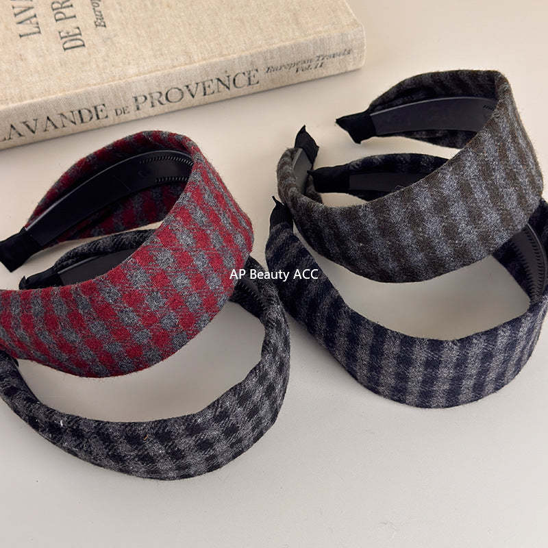 E관 - 레트로 체크무늬 패턴 와이드 머리띠 [27632] 25.11-1