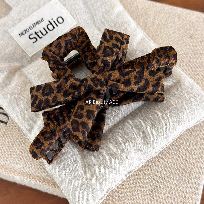 E관 - 호피무늬 리본 미디엄 사이즈 디자인 집게핀 [26013] 24.09-3