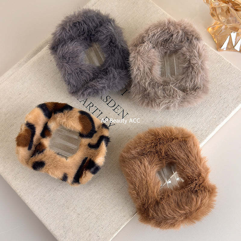 E관 - 퍼 소재 타원형 호피무늬 대형 집게핀 [26154] 25.11-1