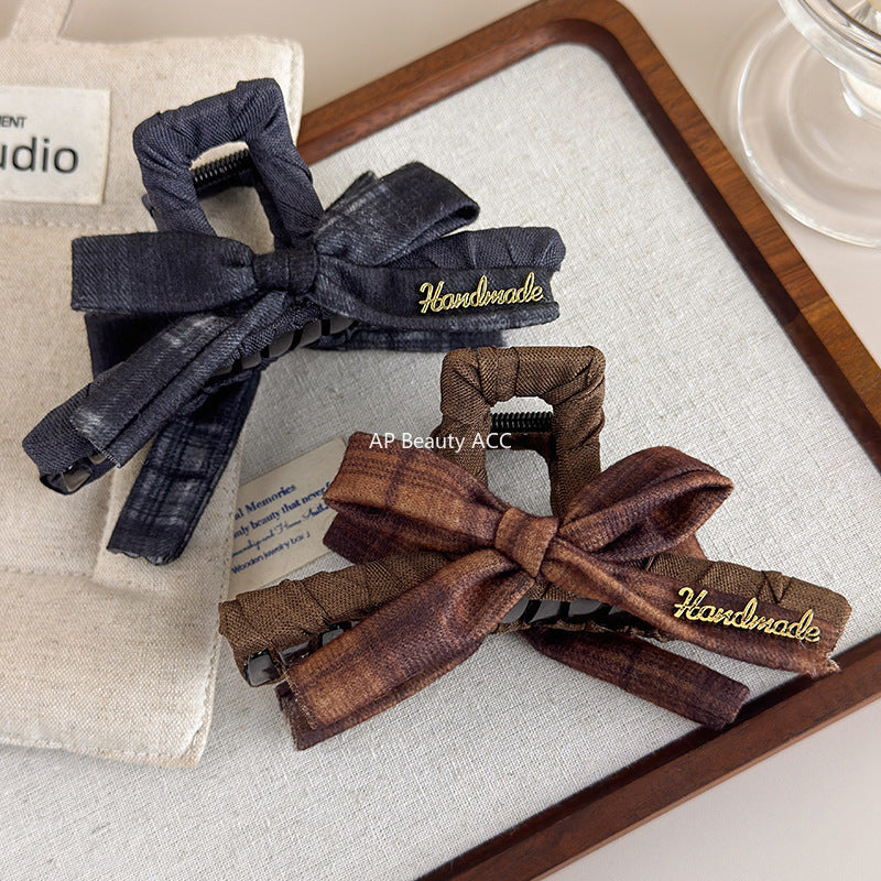 E관 - 체크 패턴 리본 디자인 집게핀 [27659] 25.11-2