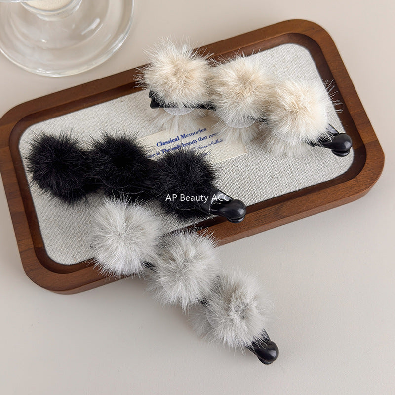 E관 - 퍼 소재 3구 디자인 집게핀 [27660] 25.11-2