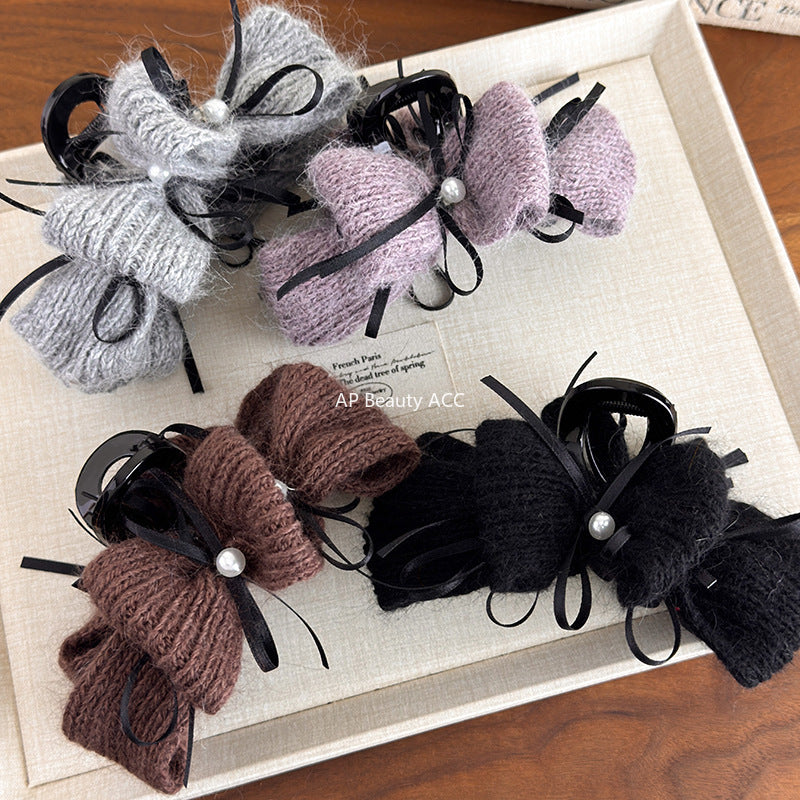 E관 - 털실 니트 진주 리본 디자인 집게핀 [27667] 25.11-2