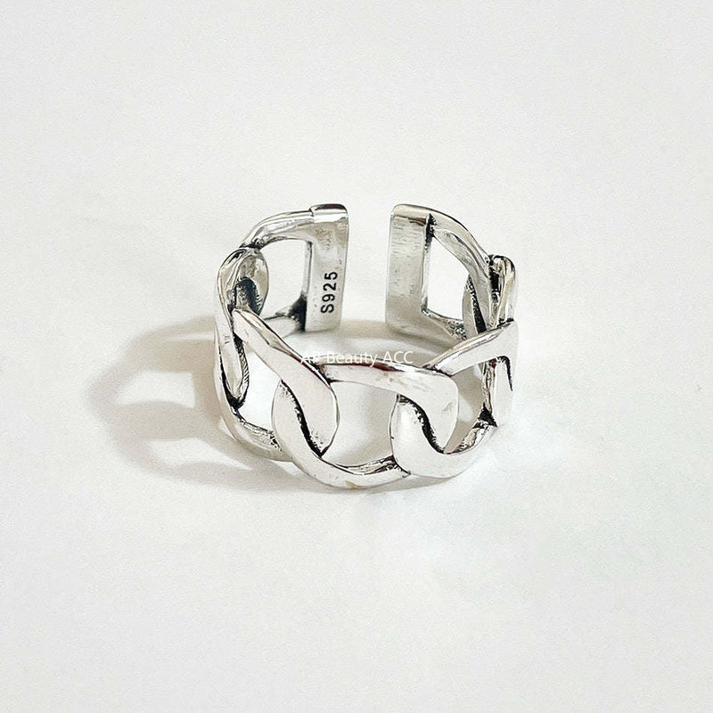 F관 - 925 실버 볼드 체인 오픈형 반지 [J549] 25.12-2