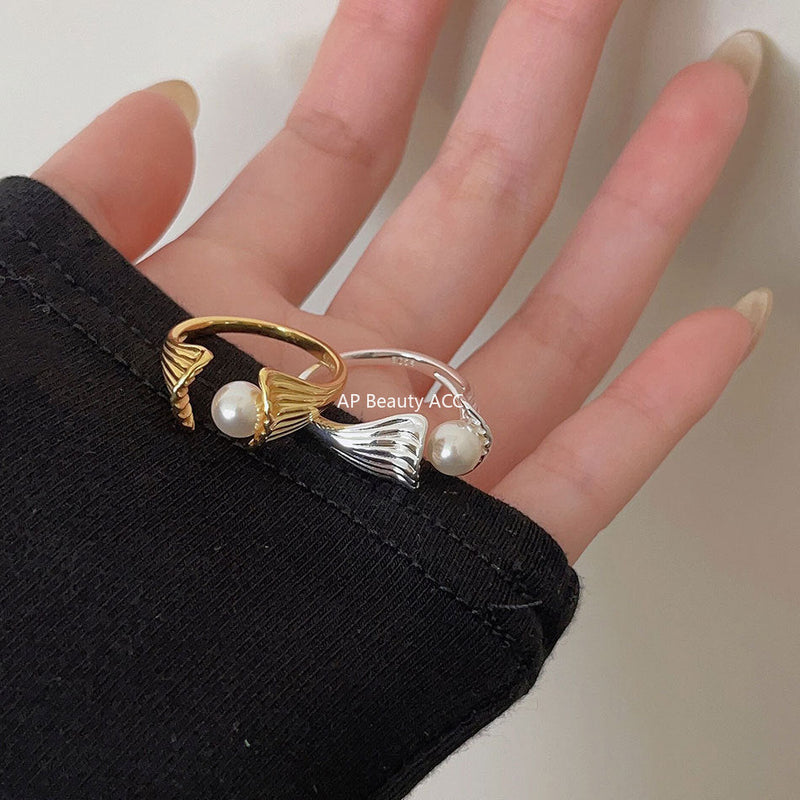 F관 - 925 실버 모조진주 조개 디자인 반지 [J1931] 25.10-2