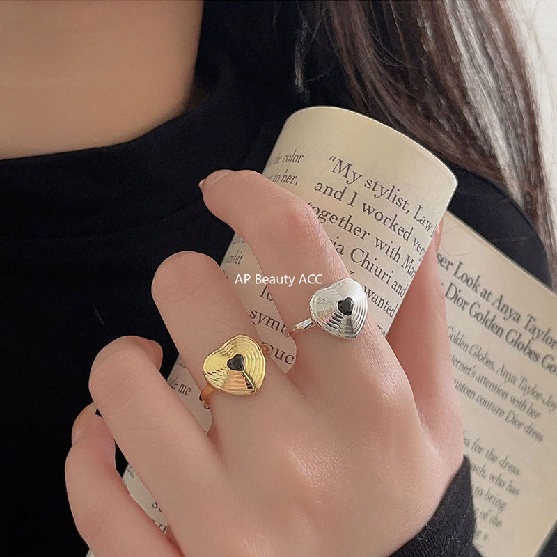 F관 - 925 실버 블랙 하트 오픈형 반지 [J1932] 25.10-2