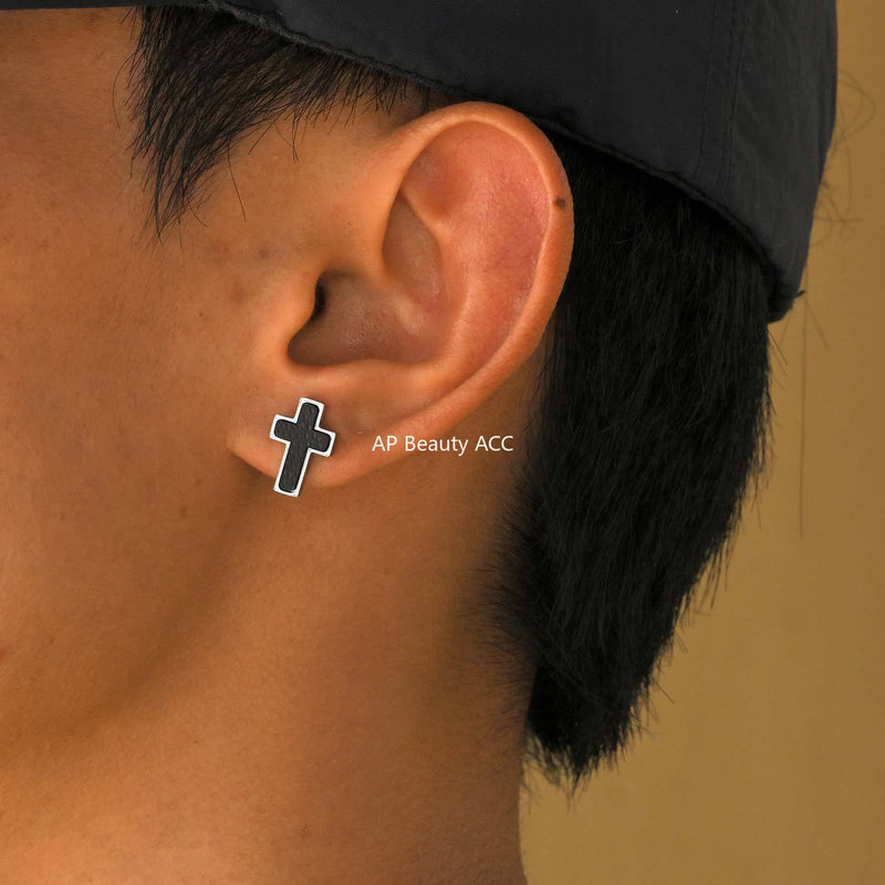 G관 - 스테인리스 스틸 펀칭 십자가 디자인 귀걸이 [ES-720] 25.11-1