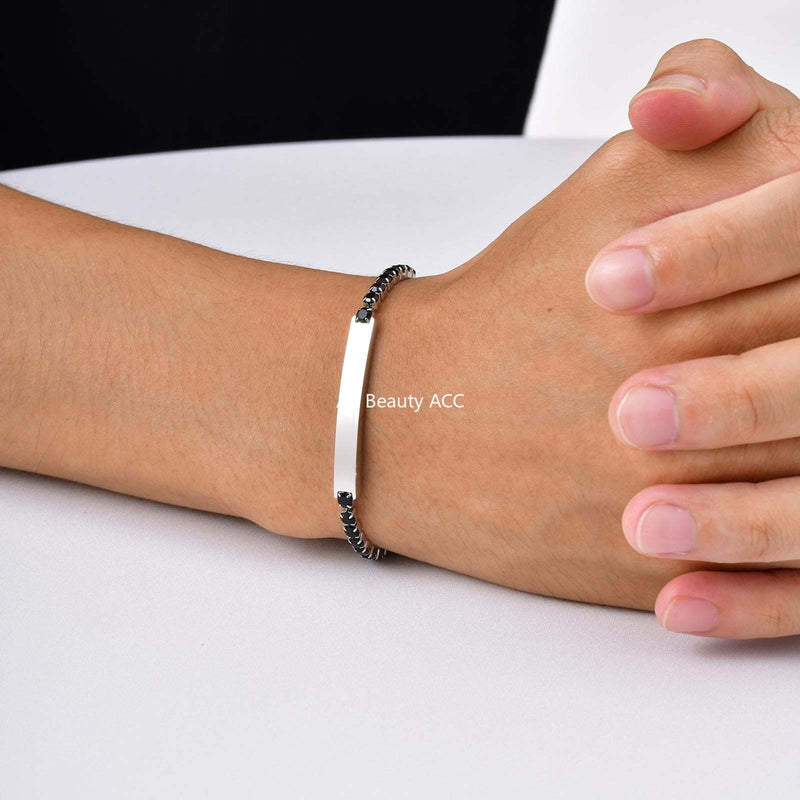G관 - 스테인리스 스틸 블랙 큐빅 체인 플레이트 팔찌 [BR-2709] 25.12-2