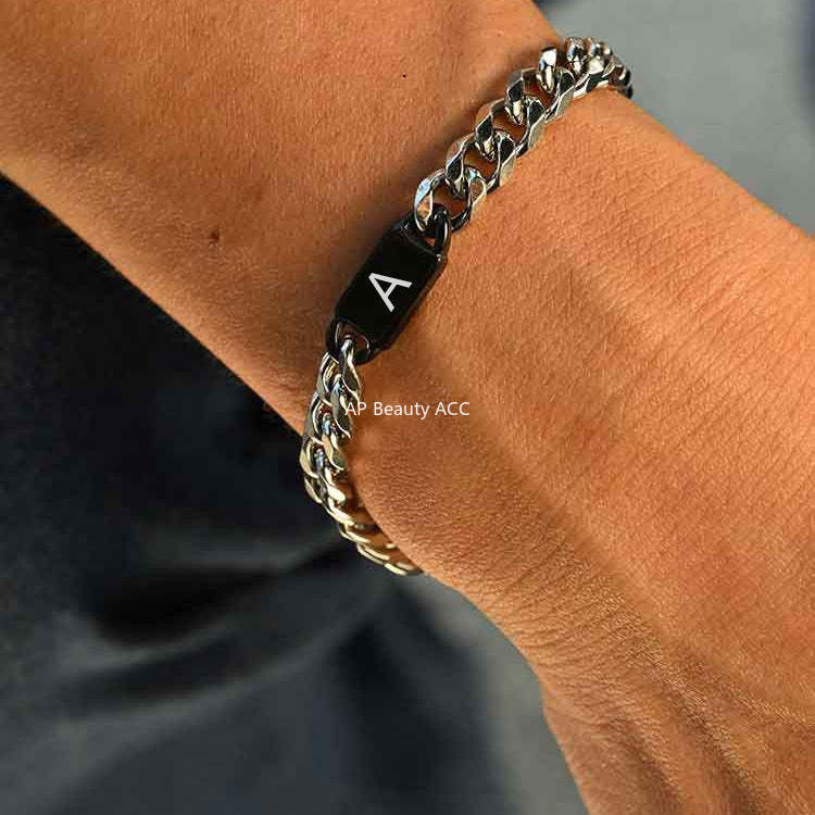 G관 - 각인 가능 레이저 알파벳 쿠바 체인 스테인리스 팔찌 [BR-2704] 25.11-3