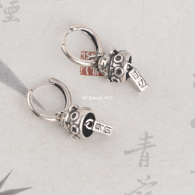 G관 - 실버색 복고양이 펜던트 링 귀걸이 [ES976] 25.10-1