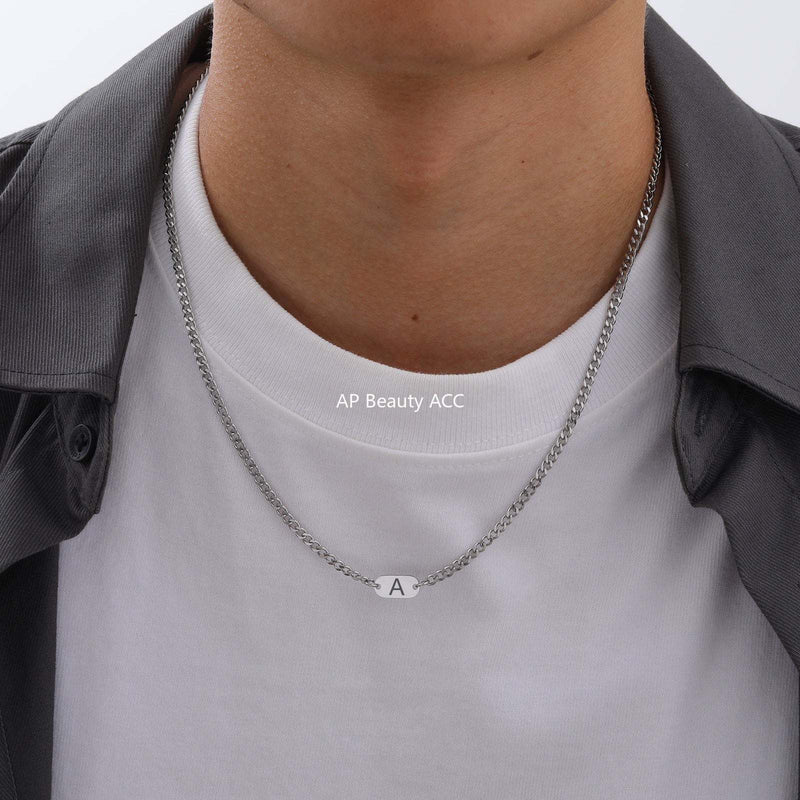 G관 - 무광 체인 오벌 펜던트 알파벳 스테인리스 목걸이 [NC-1898S] 25.11-3