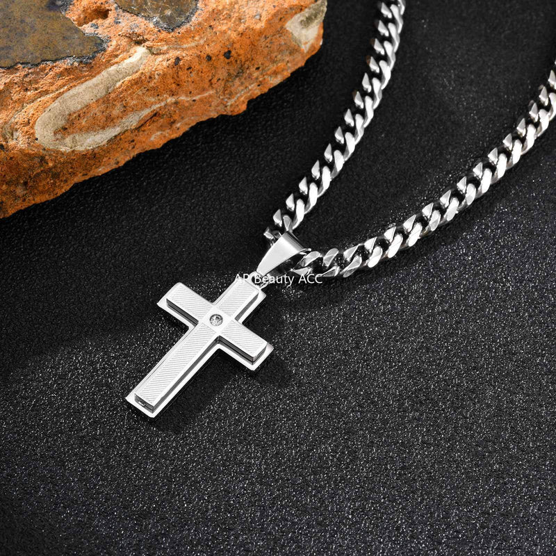 G관 - 스테인리스 스틸 스트라이프 십자가 큐빅 펜던트 목걸이 [PN-2237] 25.10-5