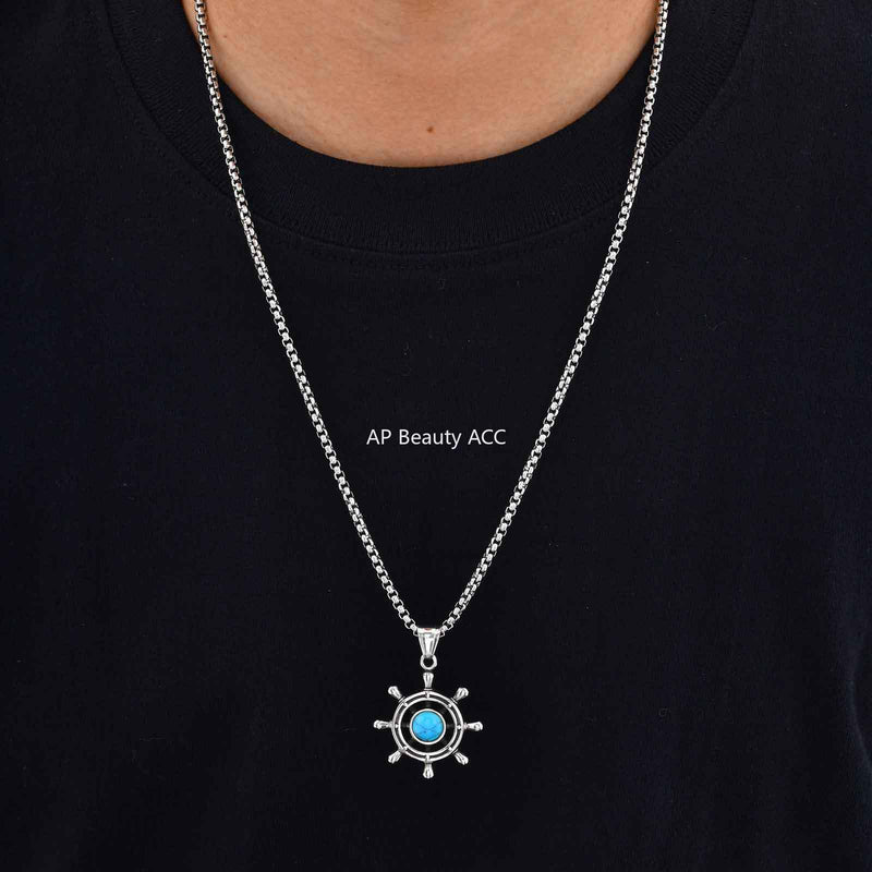 G관 - 스테인리스 터키석 조타기 모양 펜던트 목걸이 [PN-2234] 25.11-2