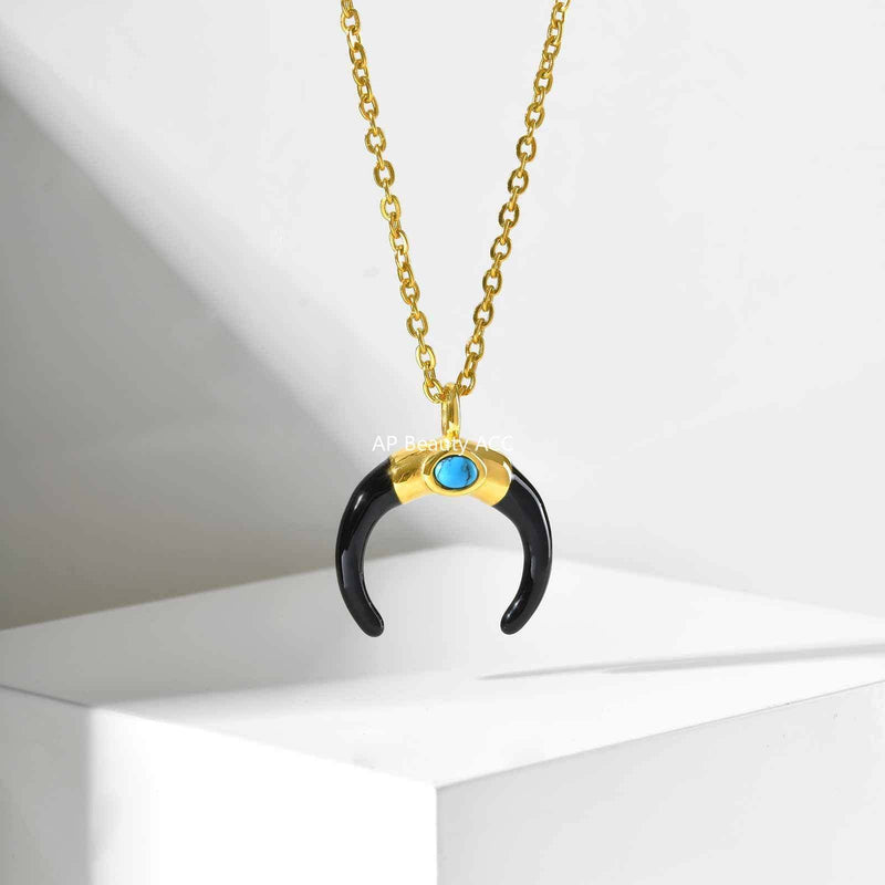 G관 - 스테인리스 스틸 터키석 달 모양 펜던트 목걸이 [PN-2230] 25.10-4