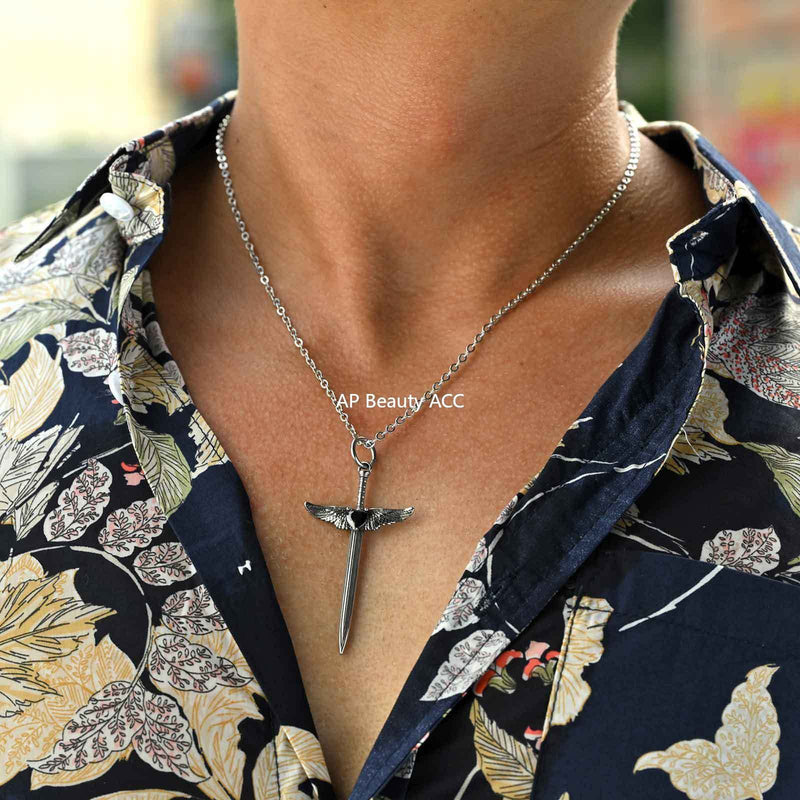 G관 - 스테인리스 스틸 블랙 소드 날개 펜던트 목걸이 [PN-2245] 25.10-4