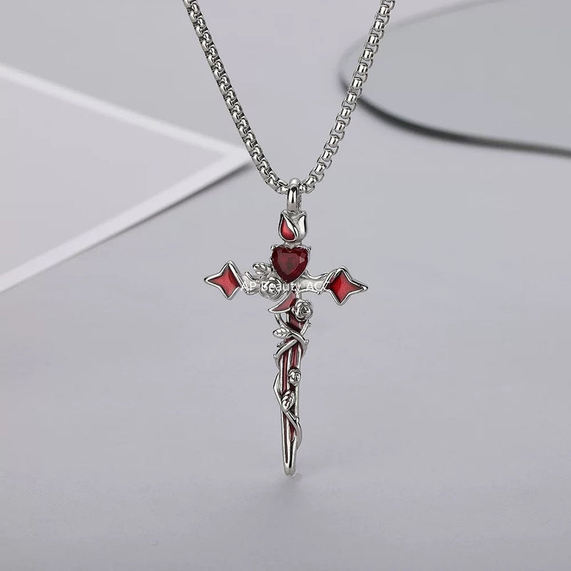 G관 - 큐빅 가시장미 십자가 하트 플라워 목걸이 [X1188] 25.10-1